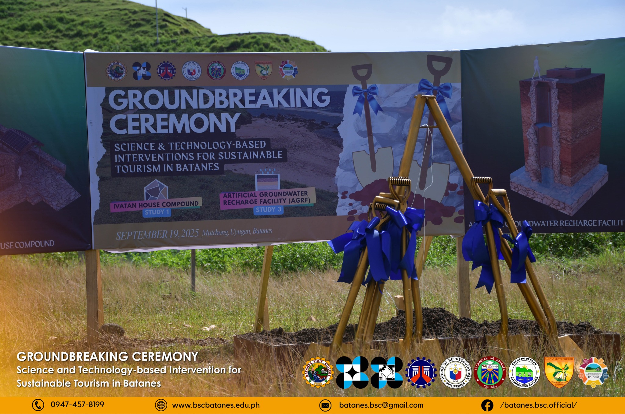 On September 19, 2025, a groundbreaking ceremony was held at Sitio Mutchung, Kayvaluganan, Uyugan, Batanes for two (2) studies under the research project “Science and Technology-Based Interventions for Sustainable Tourism in Batanes.” The project, implemented by Batanes State College (BSC) and funded by the Department of Science and Technology (DOST), began on November 4, 2024 and will run until November 3, 2026.